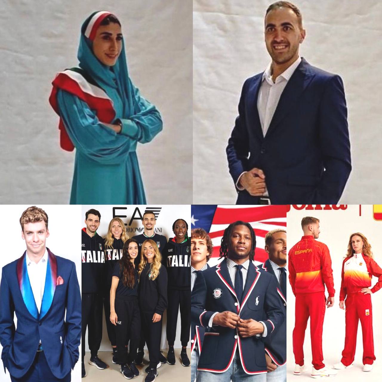 در تصویر بالا تصویری از لباس کاروان ایران در المپیک توکیو(دوره گذشته) و لباس برخی کشورهای مطرح برای المپیک پاریس از جمله آمریکا، انگلیس، فرانسه، اسپانیا، ایتالیا، کره، ژاپن، استرالیا و کانادا رو با برندهایی همچون آدیداس، پولو، اسیکس، جورجیو آرمانی و… می بینید.